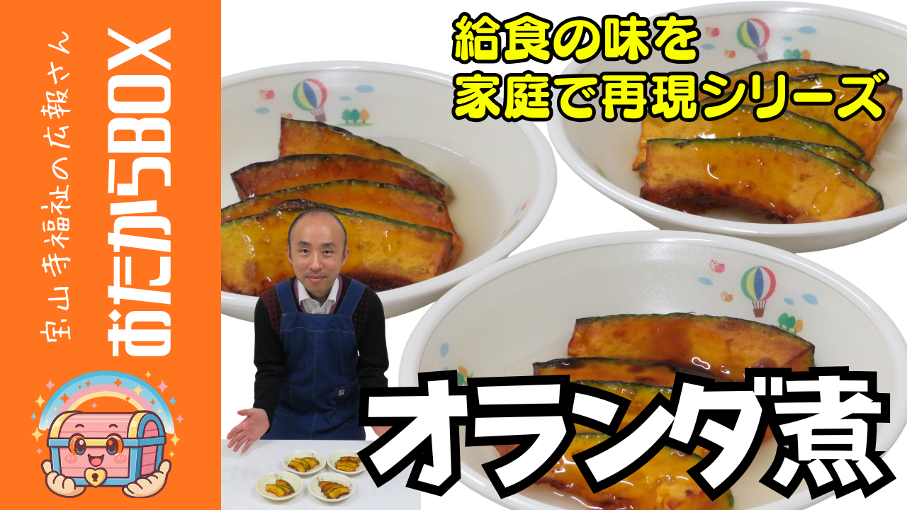 極楽坊あすかこども園の人気給食メニュー、カボチャを使った「オランダ煮」を家庭で作れるレシピをご紹介します。園長がクッキングに挑戦!