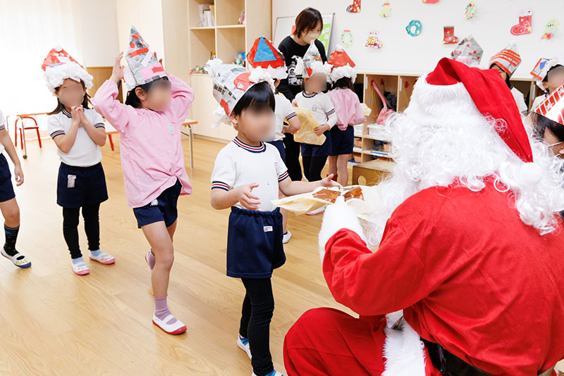 園にサンタさんがやってきてくれます。子どもたちは大喜びです。