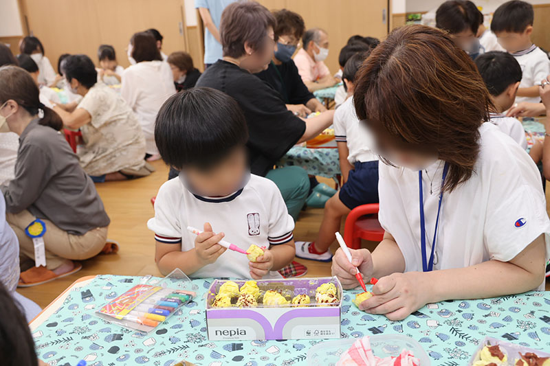 おじいちゃんやおばあちゃんと一緒に、保育園で過ごします。