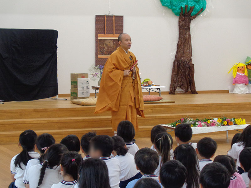 お釈迦様がお悟りを開かれたことをお慶びする法要です。園のホールでお祈りと、成道会についての劇を見ます。